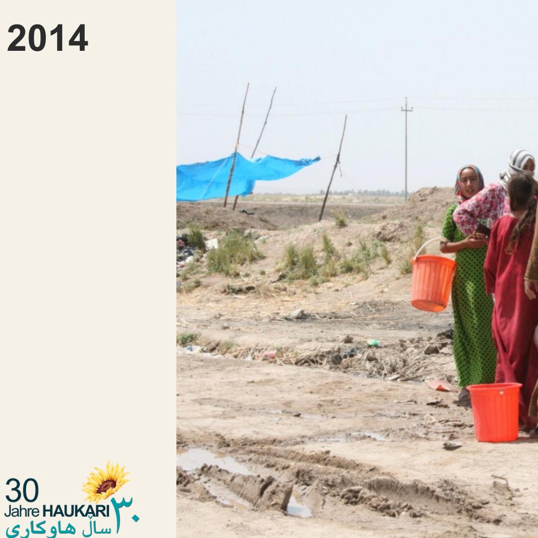 In June 2014, IS took control of Mosul and numerous other cities in the provinces of Nineveh, Salahaddin and Baquba/Dyala, proclaiming a caliphate there. People fleeing IS are seeking safety in the Kurdish provinces of Duhok and Erbil on the north-western border of Kurdistan. However, more refugees from the provinces of Salahaddin, Anbar and Baquba are also pouring into the Germian area in the south-east of the Kurdish region every day. The Kurdistan Health Foundation, KHANZAD and HAUKARI provided emergency humanitarian aid.
