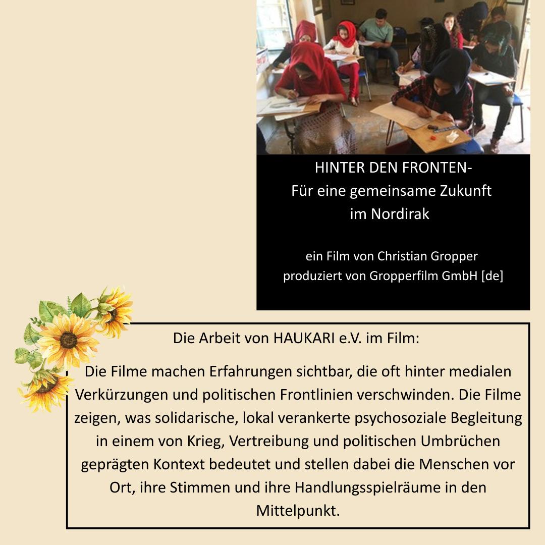 Over the years, the work of HAUKARI e.V. has been documented repeatedly on film in an attempt to make visible experiences that would otherwise disappear behind media simplifications and political front lines.